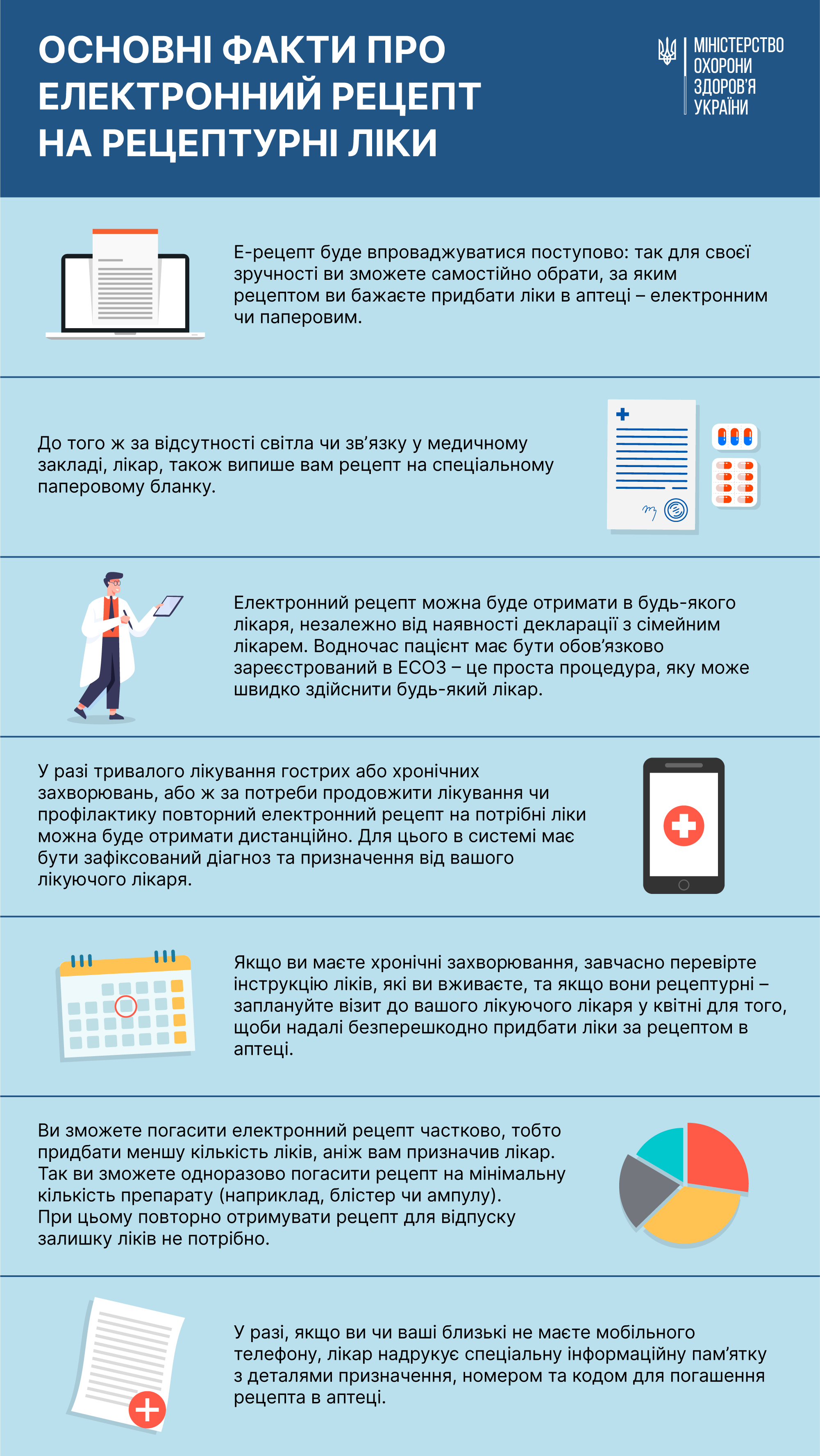 7. У разі, якщо ви чи ваші близькі не маєте мобільного телефону, лікар надрукує спеціальну інформаційну пам’ятку з деталями призначення, номером та кодом для погашення рецепта в аптеці.